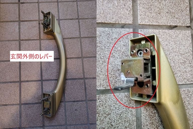 玄関ドアの室外側ムーンハンドルに付いている外側把手台座ってやつです。