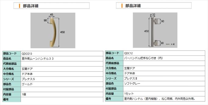 ちなみに部品の型番は、室外側ムーンハンドル QDCG13(ゴールド)、またはQDCY13(グレー)です。