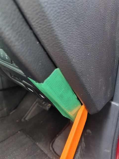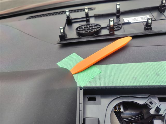 こちらもサイドパネルと同じように養生してヘラを差し込みます。